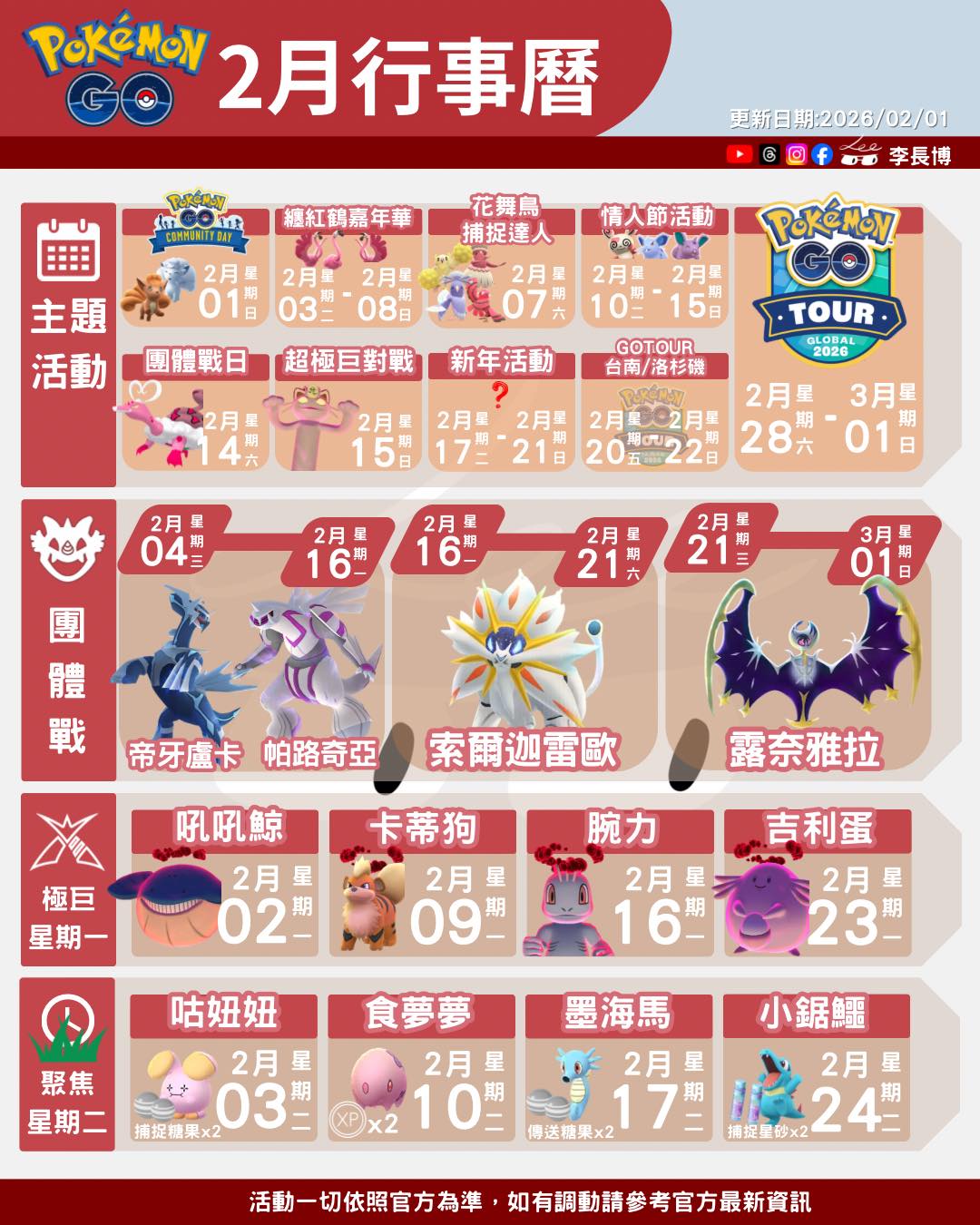 Pokemon GO 2月相關活動行程行事曆資訊 2026