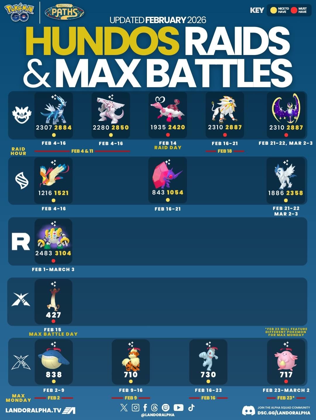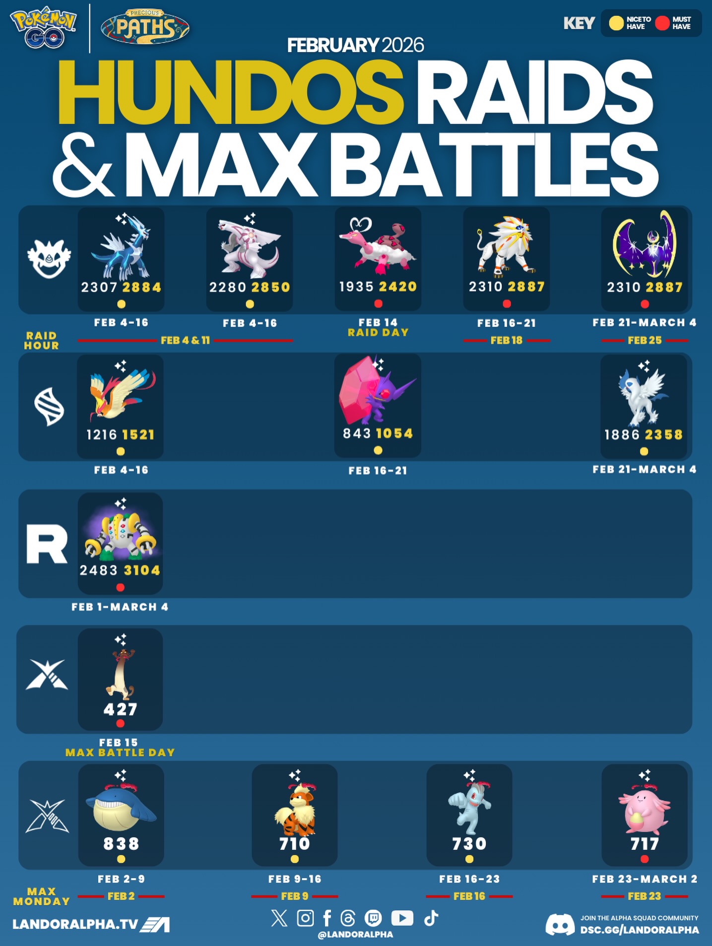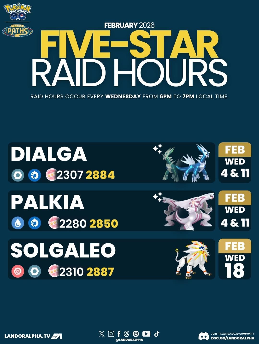 | 2/4 – 2/16 | 帝牙盧卡 (起源形態) | 2307 / 2884 | 2/4 & 2/11 晚餐約會 | 🟡 |