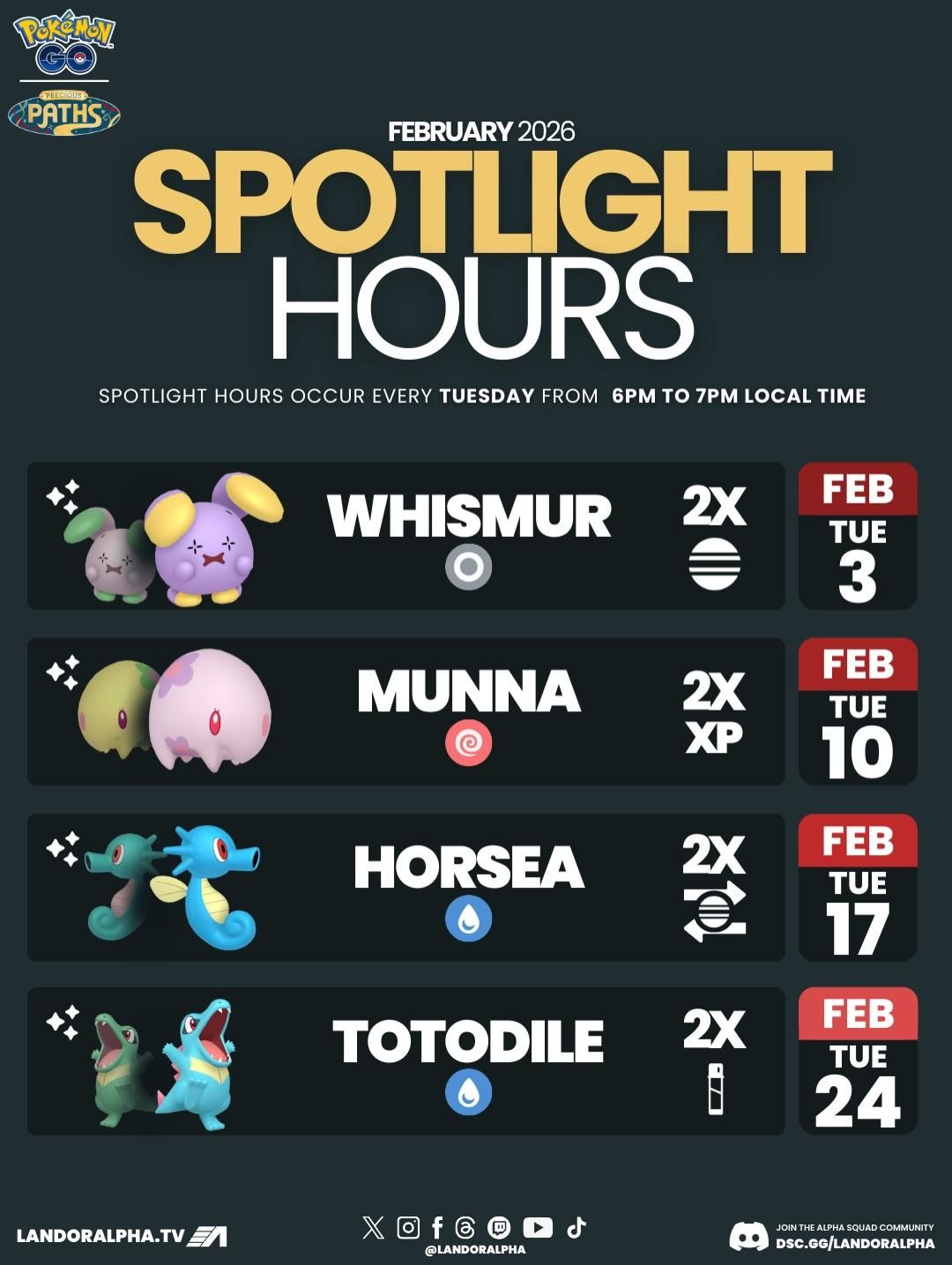 | 2/9 – 2/16 | 卡蒂狗 (洗翠樣子) | 710 | 2/9 極巨星期一 | 🟡 |