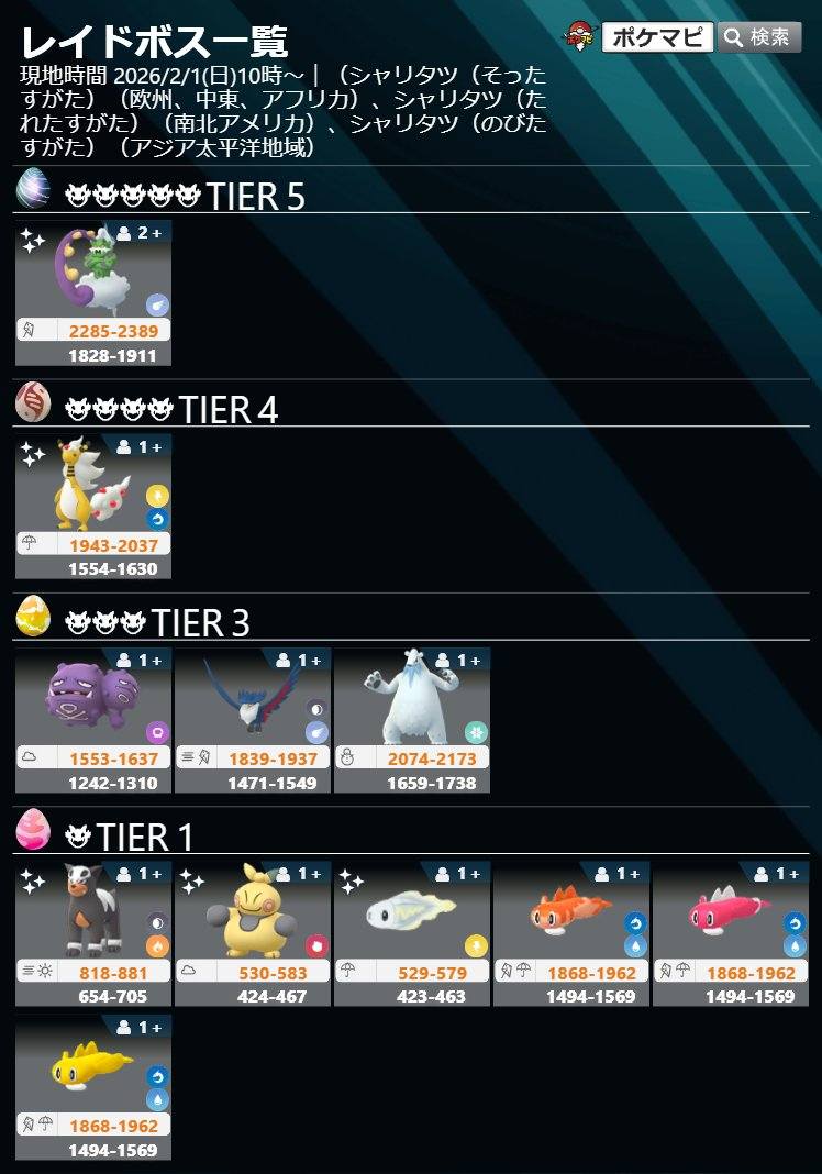 2026/01/25-2026/02/04 更新 BOSS 最新GO團體戰頭目CP表更新 1星-6星 頭目一覽 (Raid Boss List)