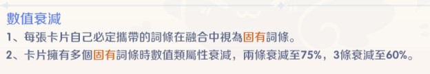 當卡片擁有多個固有詞條時,數值類屬性會衰減: