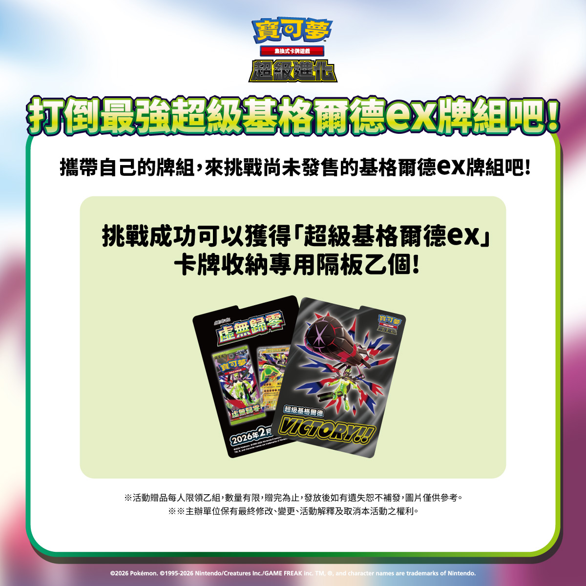 實體卡牌體驗:「打倒最強超級基格爾德 ex 牌組」挑戰區今日開放,參加可獲得限定獎品。