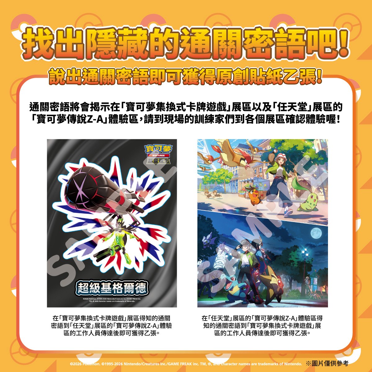 👉通關密語將會揭示在「寶可夢集換式卡牌遊戲」展區以及「任天堂」展區的「寶可夢傳說Z-A」體驗區,請到現場的訓練家們到各個展區確認體驗喔!