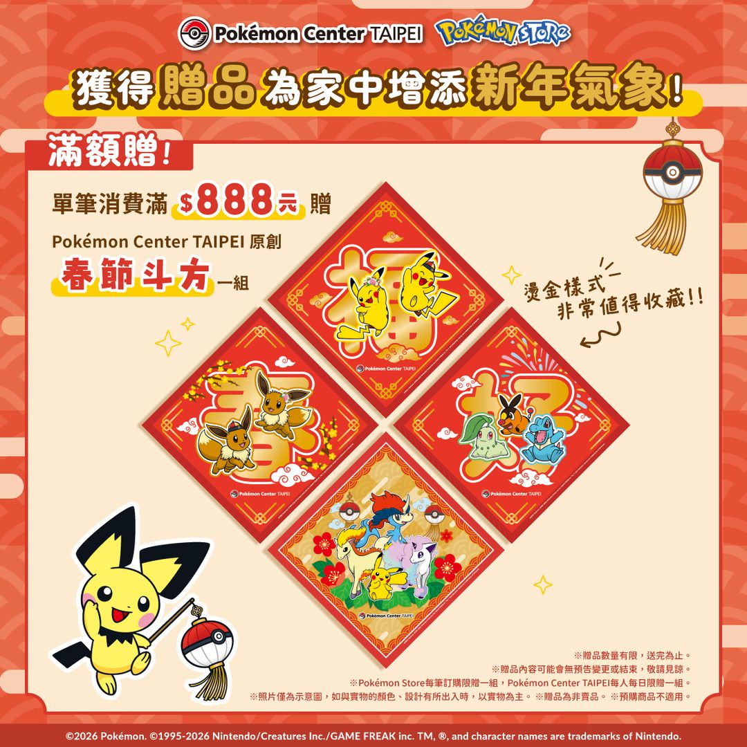 ※Pokémon Center TAIPEI「春節斗方」每人每日限贈一組。
