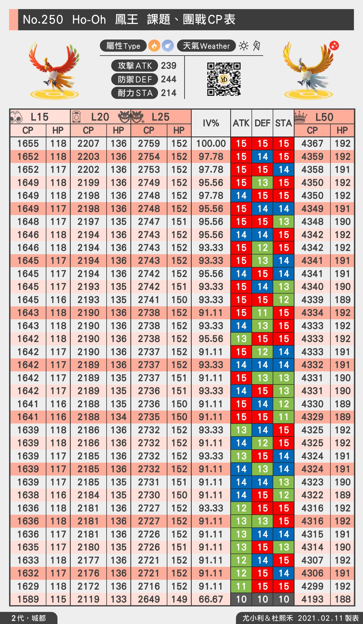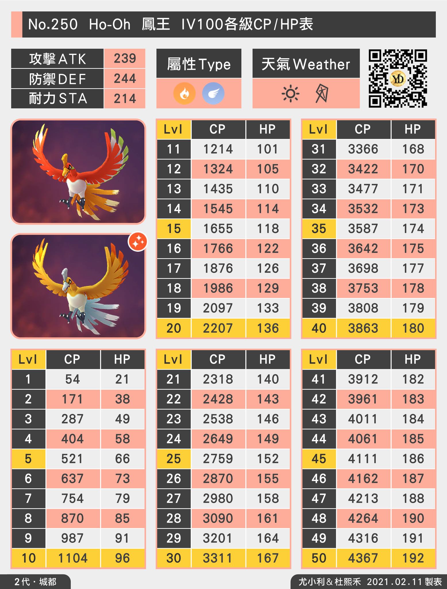 鳳王 IV 100 CP/HP 對照表更新下載 Pokemon GO 2026 對戰聯盟