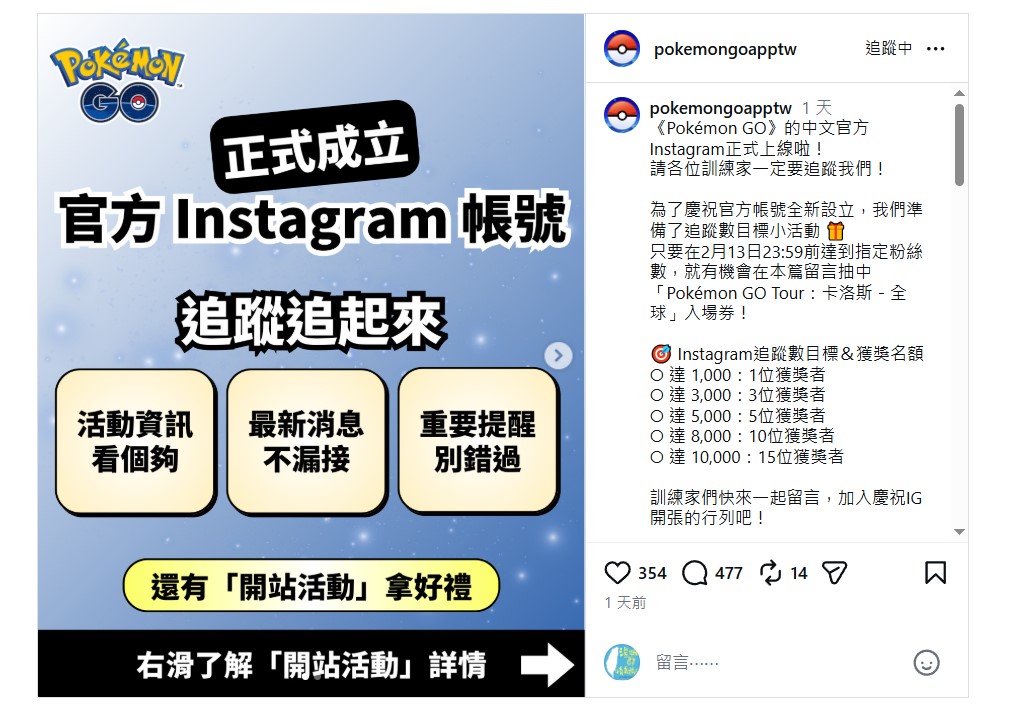 分享台灣Pokémon GO Instagram 粉專新的活動🎉