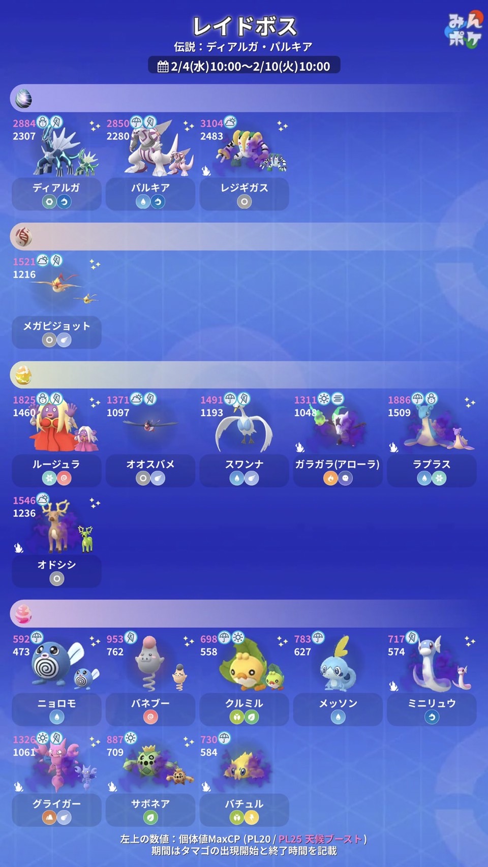 2026/02/04/-2026/02/10 更新 BOSS 最新GO團體戰頭目CP表更新 1星-6星 頭目一覽 (Raid Boss List)