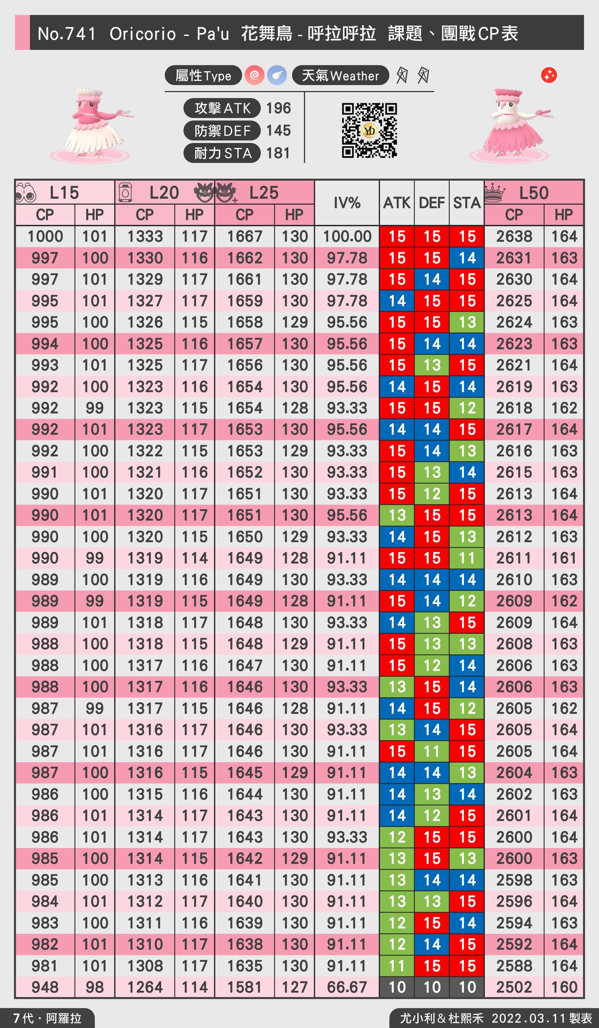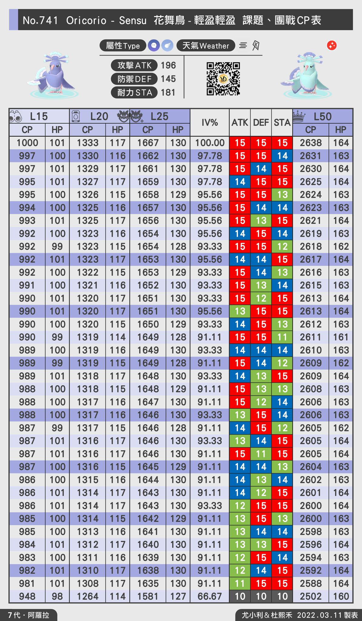 地區限定花舞鳥 IVCP100表更新下載 Pokemon GO 2026