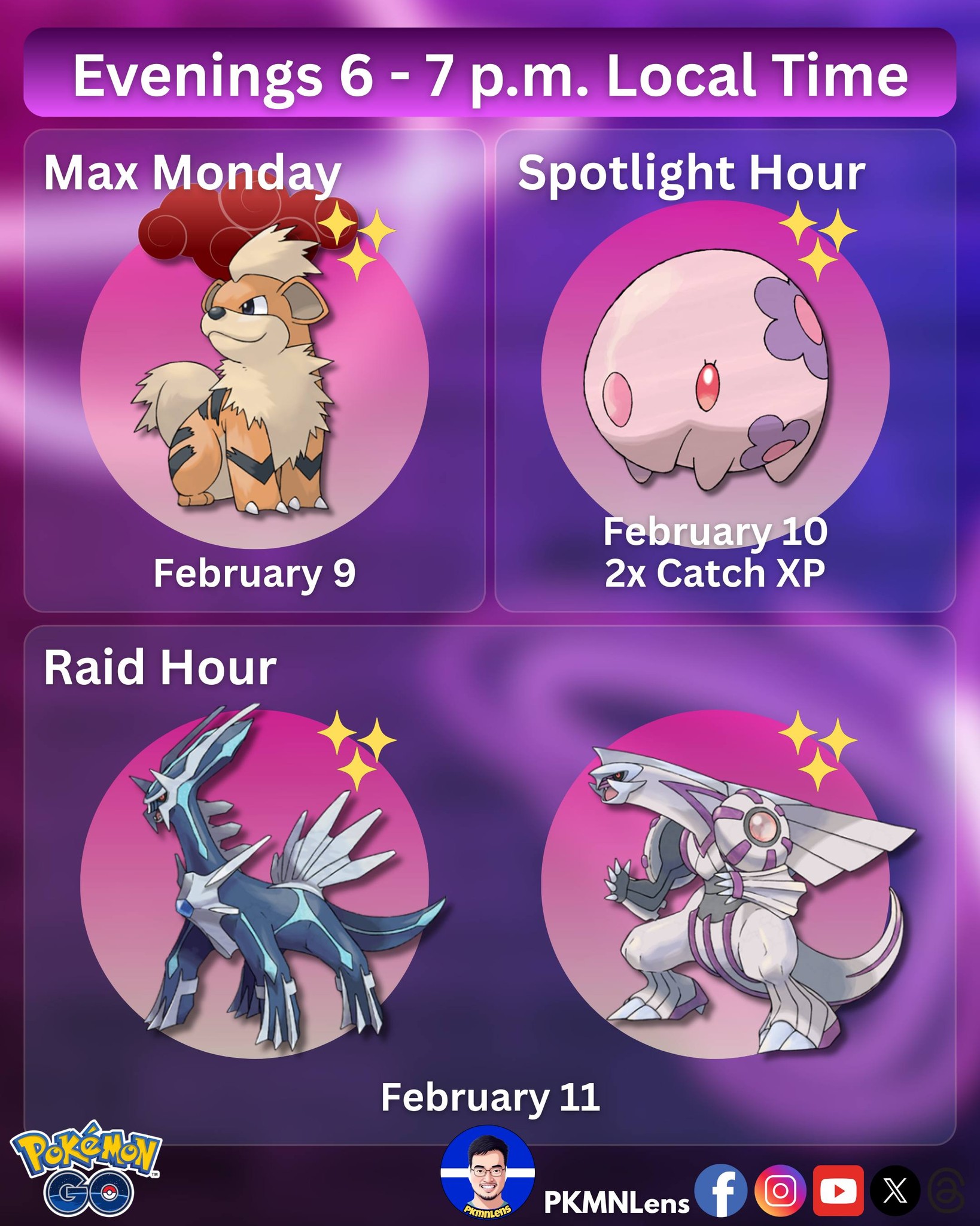 ● 02/11 週三團體戰約會主角 : 「帝牙盧卡」、「帕路奇亞」的【團體戰時間】