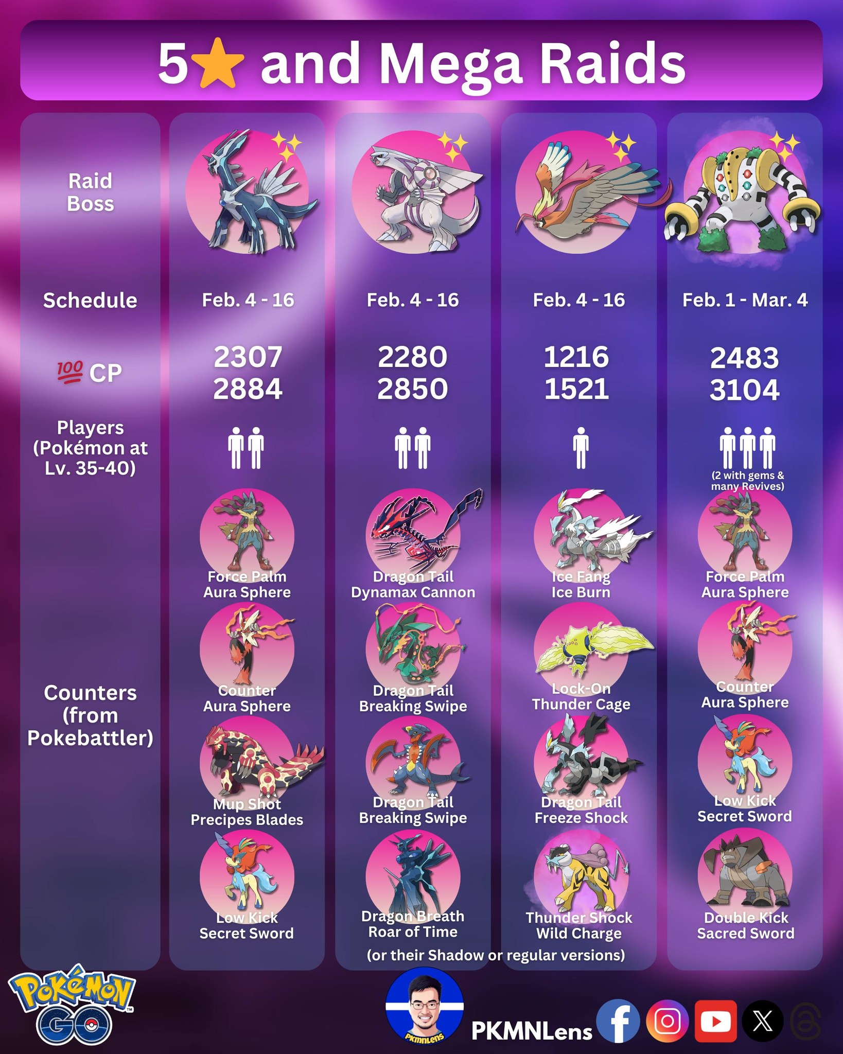 2026/02/04/-2026/02/10 更新 BOSS 最新GO團體戰頭目CP表更新 1星-6星 頭目一覽 (Raid Boss List)