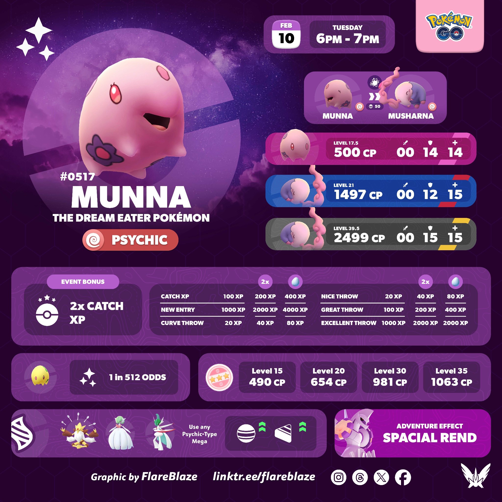 ● 02/10 週二聚焦時刻主角 : 「食夢夢」的【聚焦時刻】獎勵內容:捕捉寶可夢XP2倍