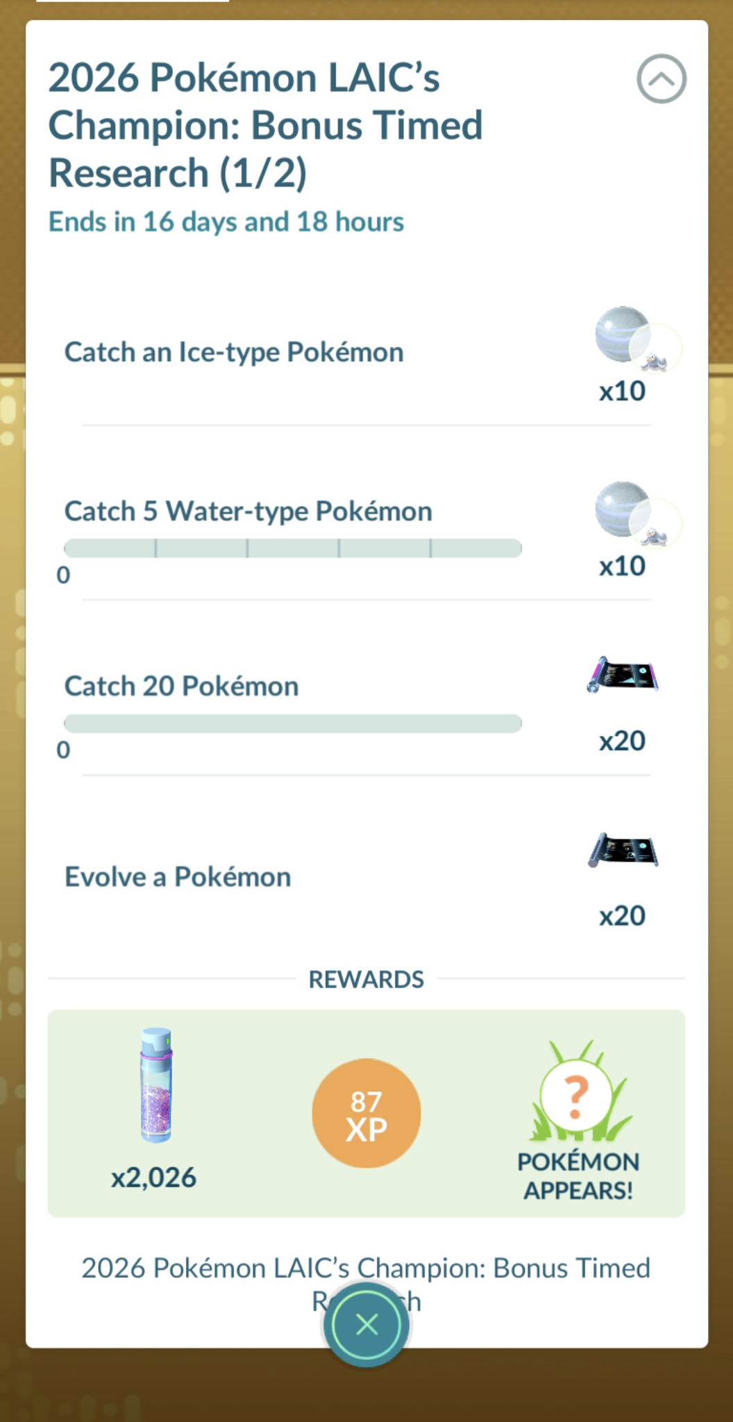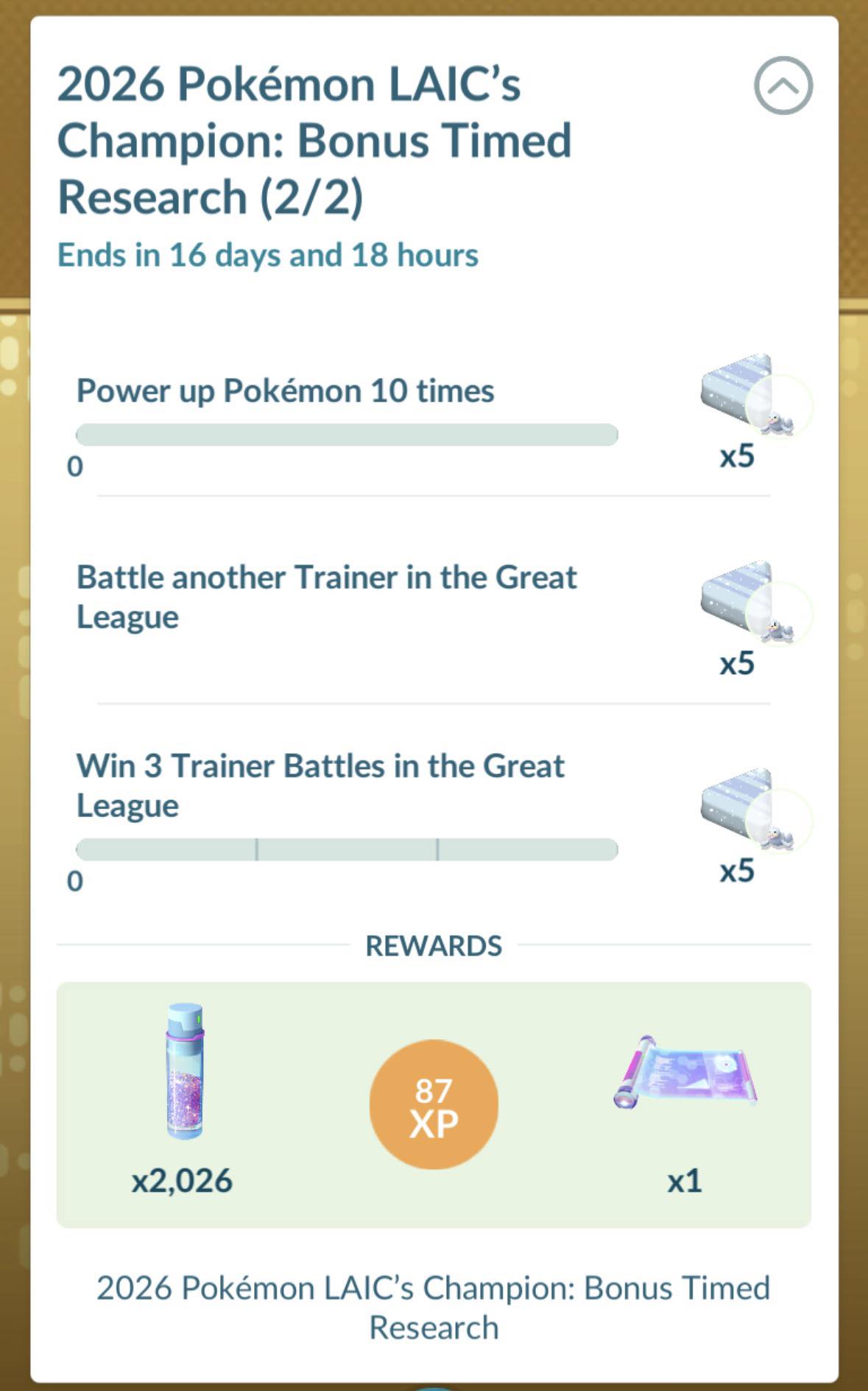2026 Pokémon LAIC’s Champion: Bonus Timed Research