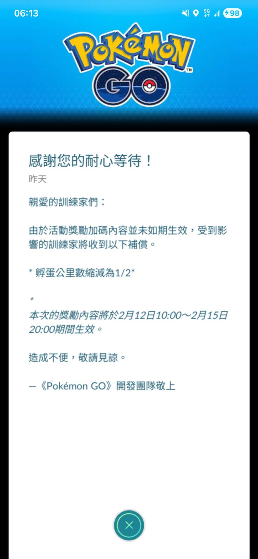 02/12 活動獎勵加碼補償公告 Pokemon GO 2026