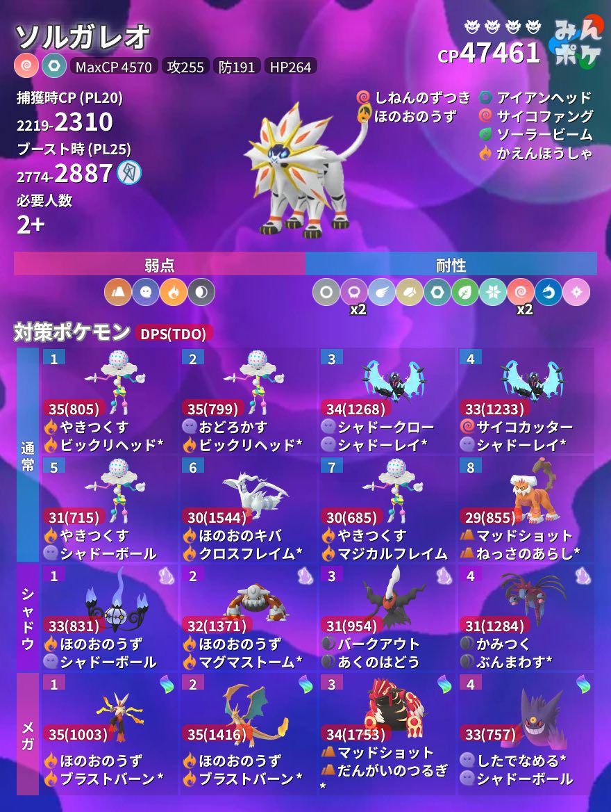 索爾迦雷歐最新在Pokemon GO各盃賽對戰聯盟表現分析 配招技能推薦 各盃賽數值推薦 各盃賽建議的寶可夢陣容搭配 剋星打手推薦