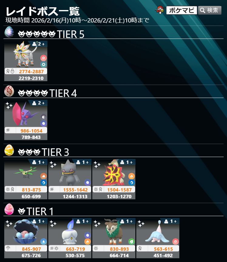 2026/02/16/-2026/02/21 更新 BOSS 最新GO團體戰頭目CP表更新 1星-6星 頭目一覽 (Raid Boss List)