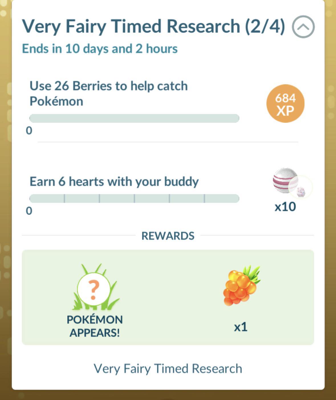 🎁 階段完成獎勵: 遇見寶可夢(預計為綿綿泡芙)、1 顆金黃蔓莓果