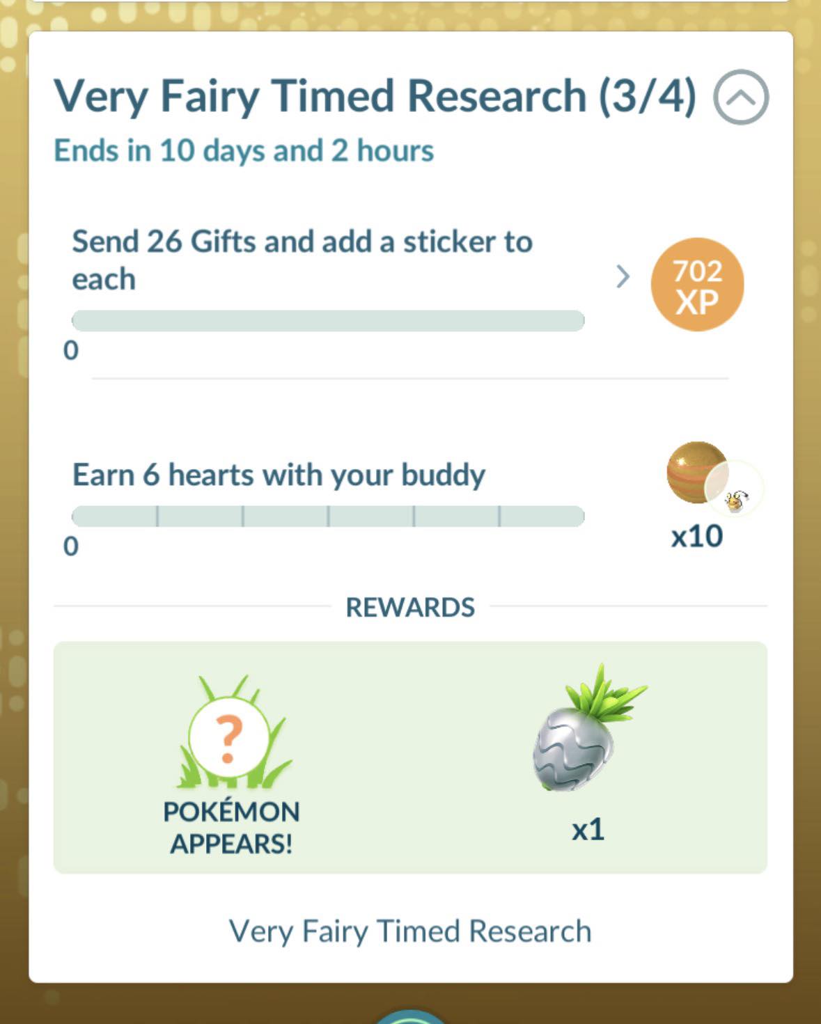 🎁 階段完成獎勵: 遇見寶可夢(預計為仙子伊布)、5 張仙子伊布貼紙