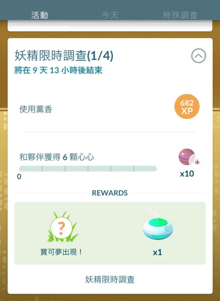 🎁 階段完成獎勵: 遇見寶可夢(預計為粉香香)、1 個薰香