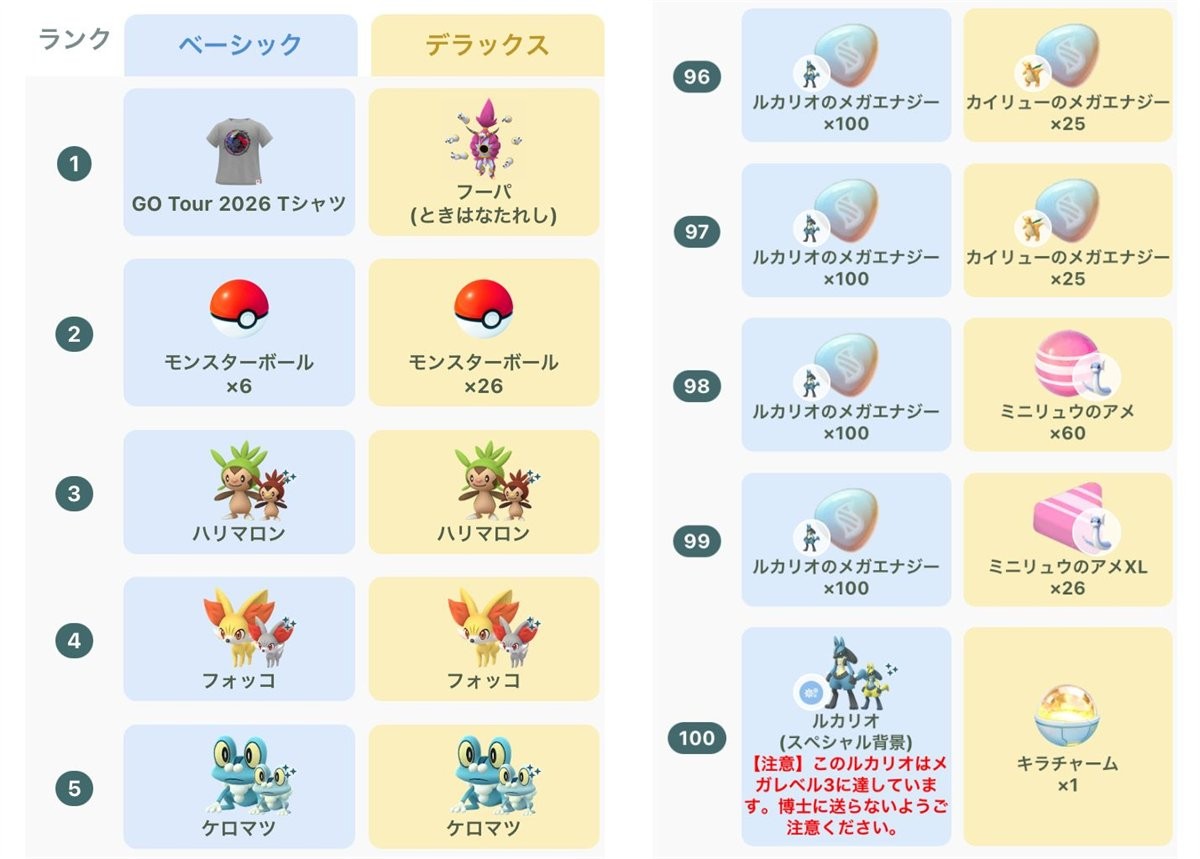 等級 (Rank) 基礎版獎勵 (ベーシック) 豪華版獎勵 (デラックス)