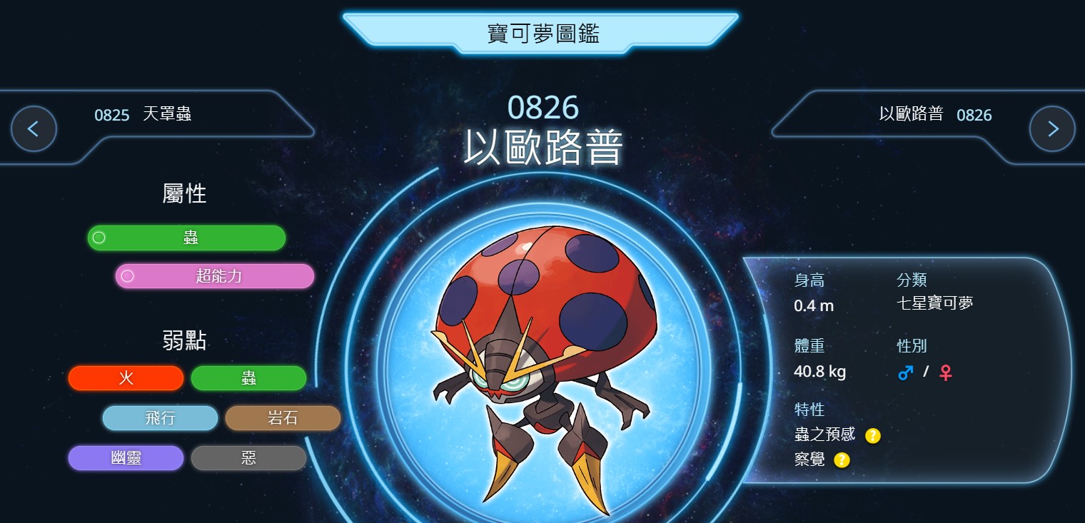 以歐路普 (Orbeetle):在瀑布左側中低空處飄浮,外型結合了紅色瓢蟲與UFO特徵的寶可夢。