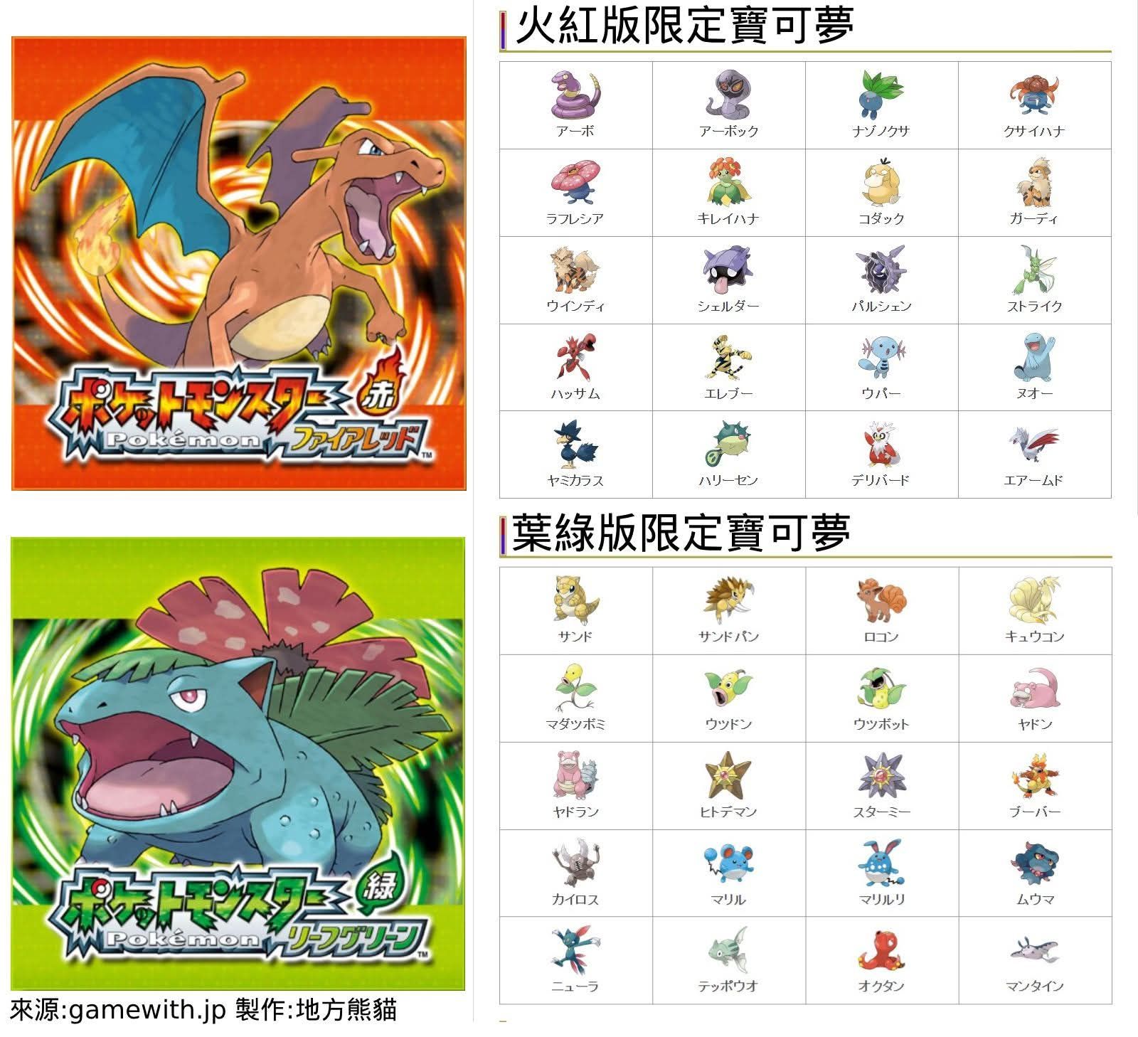 ### 火紅 vs. 葉綠:版本差異