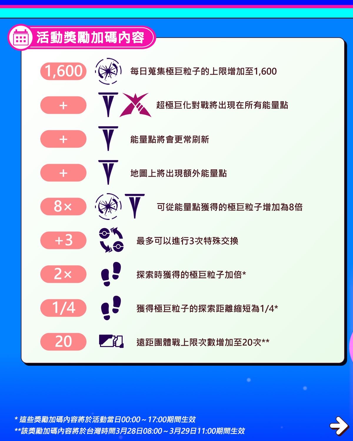 極巨對戰獲得的經驗值加倍。