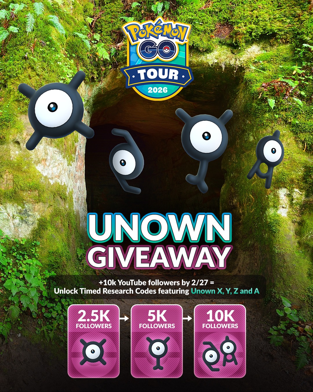 🎉 To celebrate #PokemonGOTour, we’re giving Trainers the chance to earn codes to encounter Unown X, Y, Z, and A!