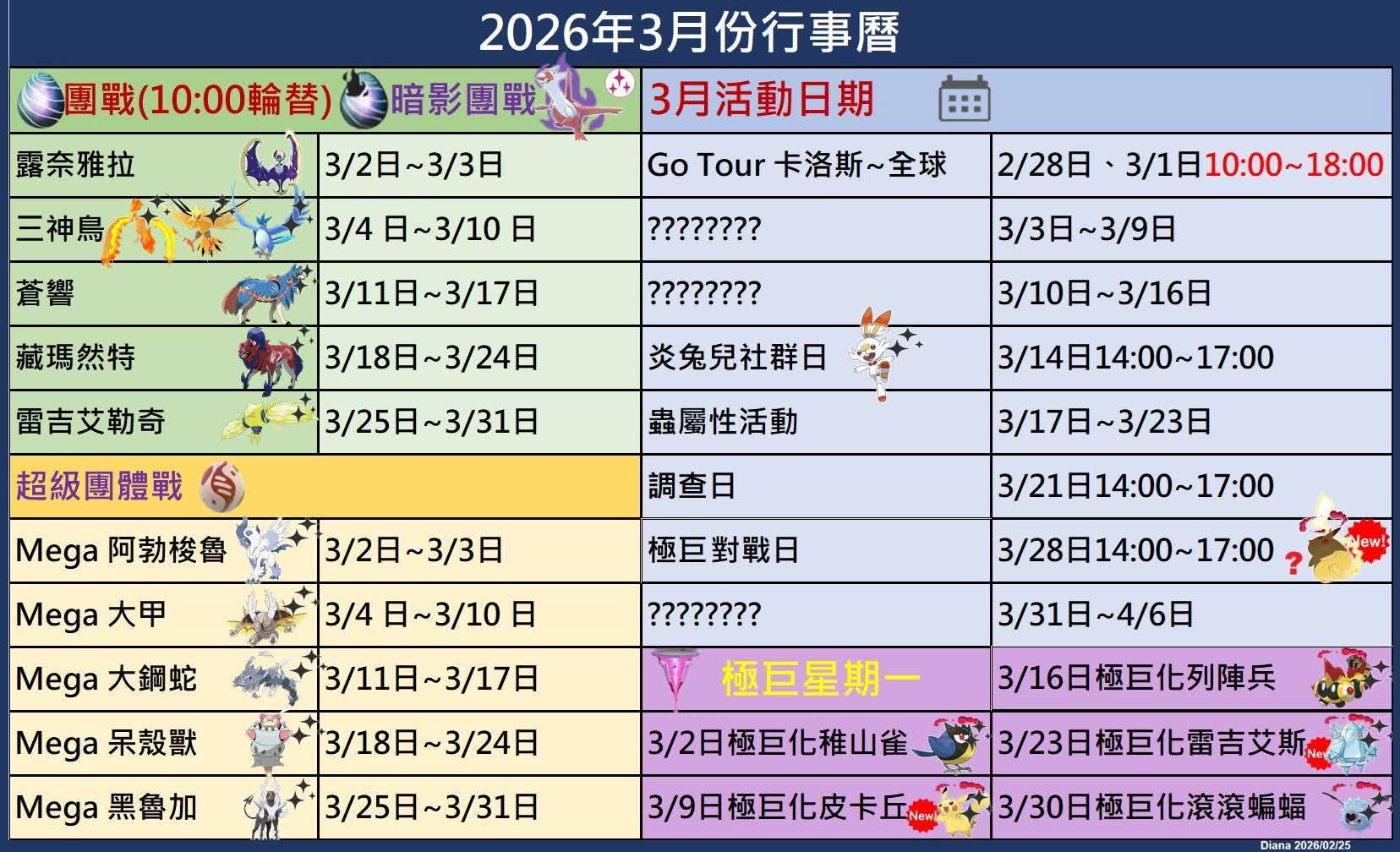 Pokemon GO 3月相關活動行程行事曆資訊 2026