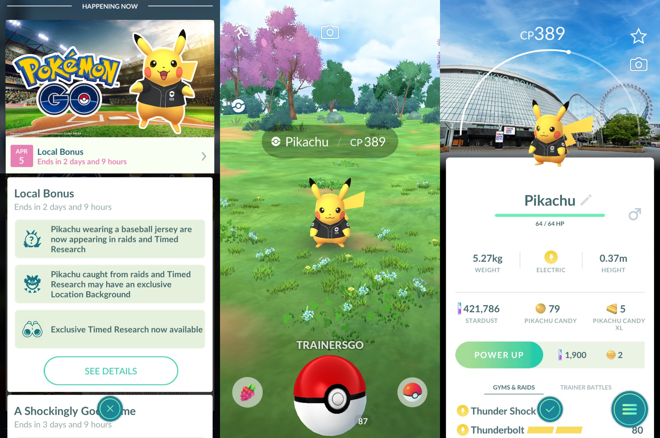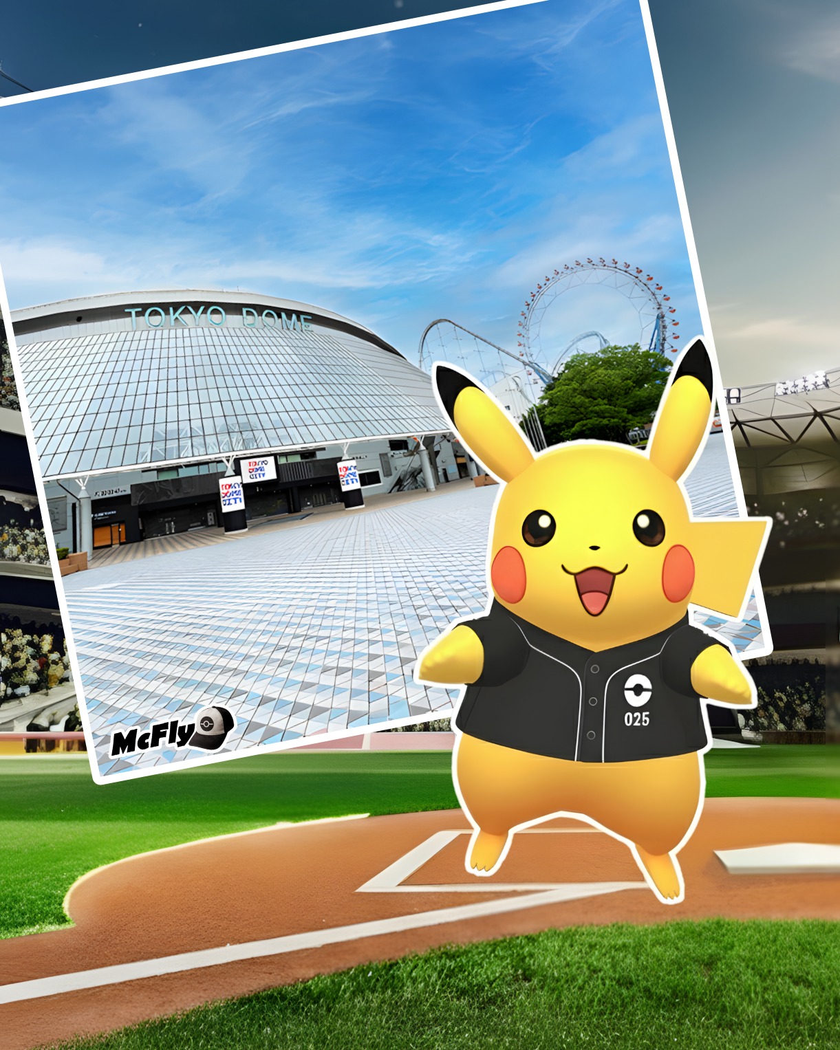 在東京讀賣巨人隊比賽期間,會場將出現穿著棒球球衣的皮卡丘團體戰。此皮卡丘有機會帶有特定的地理背景 (Location Background),詳情如下: