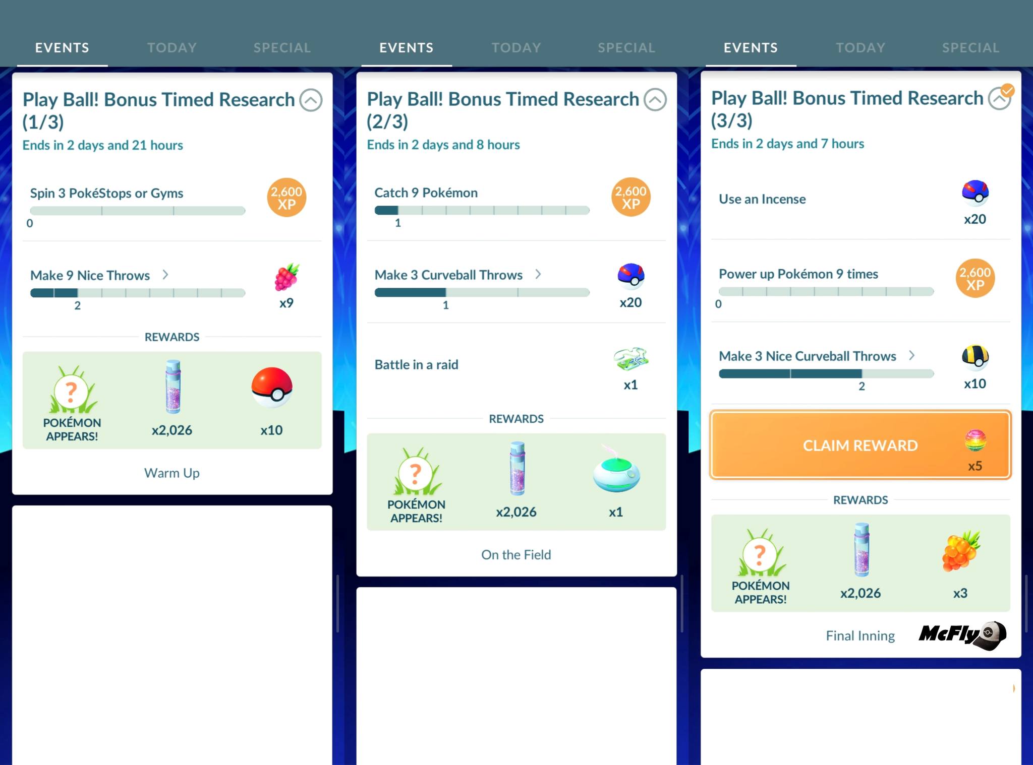 Make 3 Nice Curveball Throws / 投出3次Nice曲球 (Reward: 10 Ultra Balls / 10顆高級球)