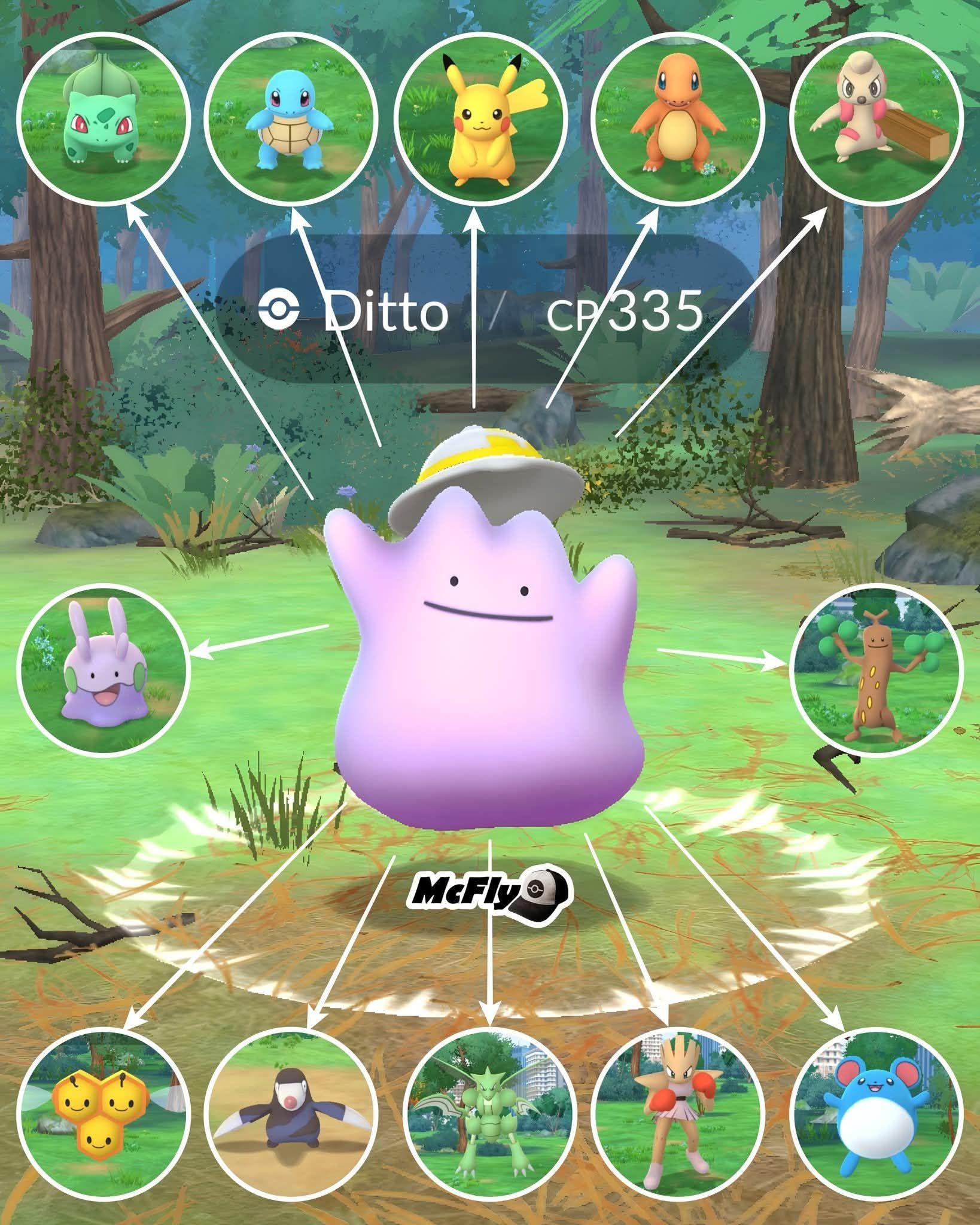 在時間結束前收集所有這些寶可夢,即可將其添加到您的精英收藏家勳章中!獎勵遭遇是戴著帽子的百變怪,帽子上還有一張地點卡。