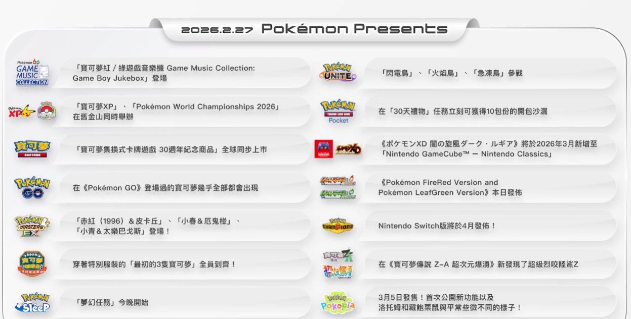 2026.2.27 Pokémon Presents 發表彙整