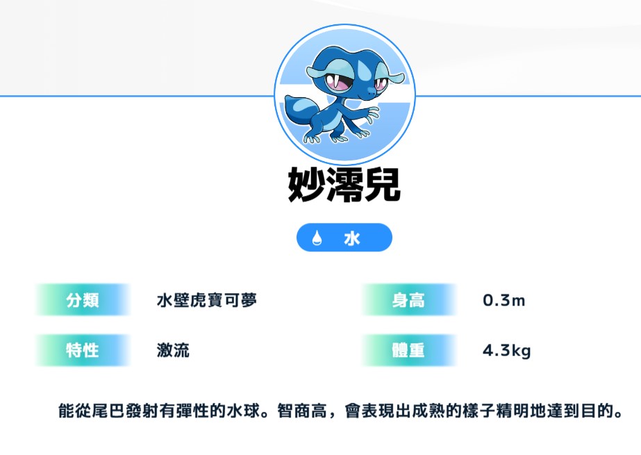 水壁虎寶可夢。能從尾巴發射有彈性的水球。