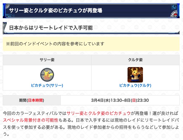 入手方式: 紗麗姿態與庫爾塔姿態的皮卡丘再度登場,海外玩家可透過遠距團體戰邀請來參與並捕捉。