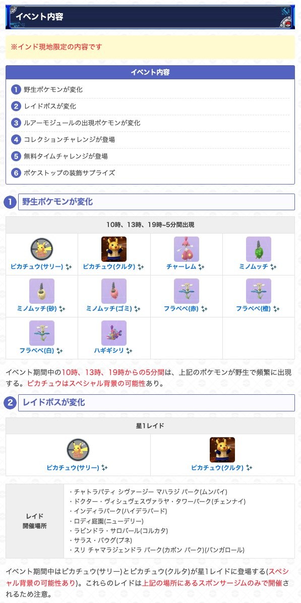 限定寶可夢: * 紗麗姿態皮卡丘 (Pikachu wearing a saree) ✨