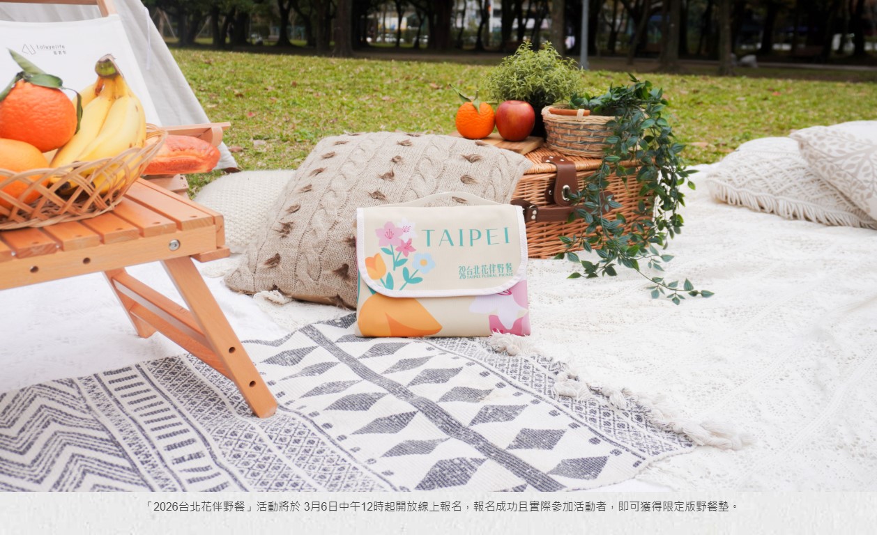 「2026台北花伴野餐」相關活動將於3月6日中午12時起在ACCUPASS開放報名,只要報名成功並實際參加者,皆可獲得活動限定版野餐墊及多項好禮,名額有限,報名額滿截止。更多活動資訊請至「2026 台北花伴野餐」官方網站及臺北旅遊網查詢。
