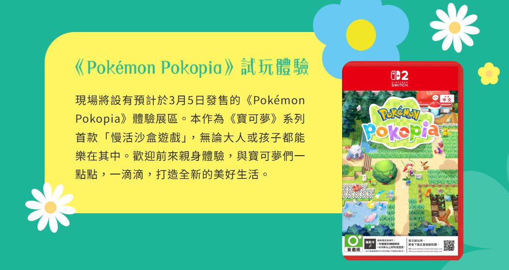 | 現場體驗與贈品 | 設有《Pokémon Pokopia》體驗展區,參加可獲精美贈品(數量有限) | |