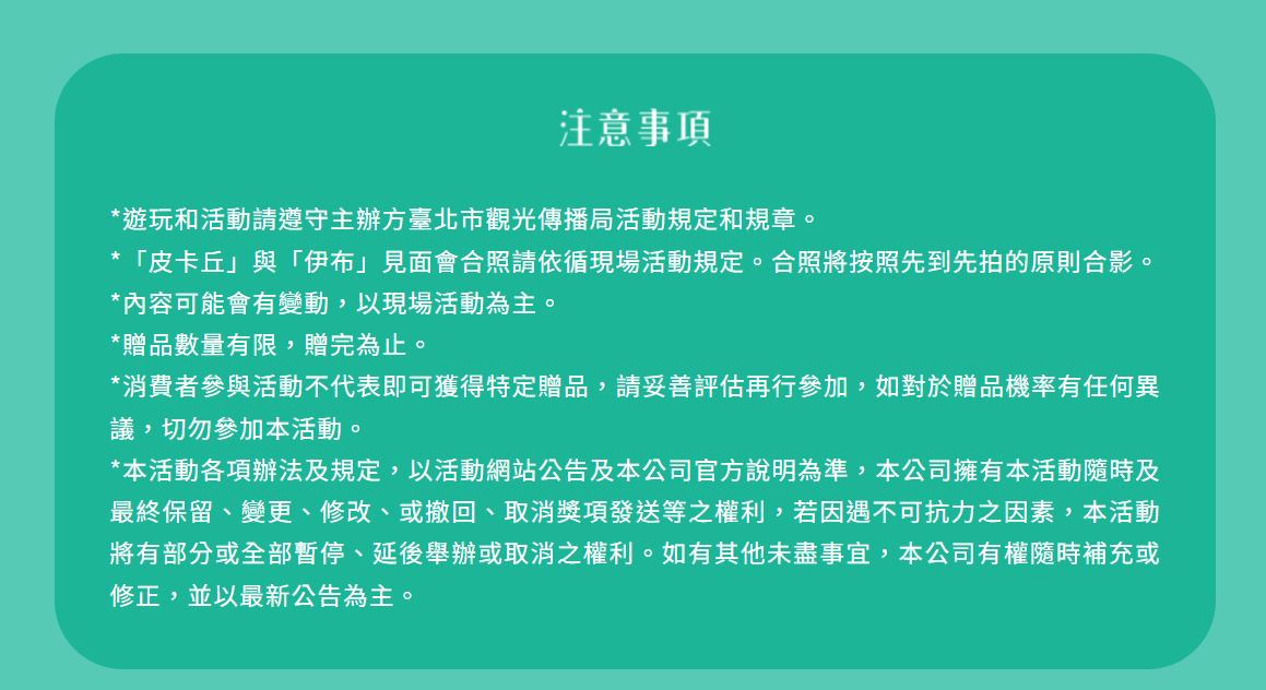 | 15:30-16:00 | 皮卡丘與伊布見面會 | ||