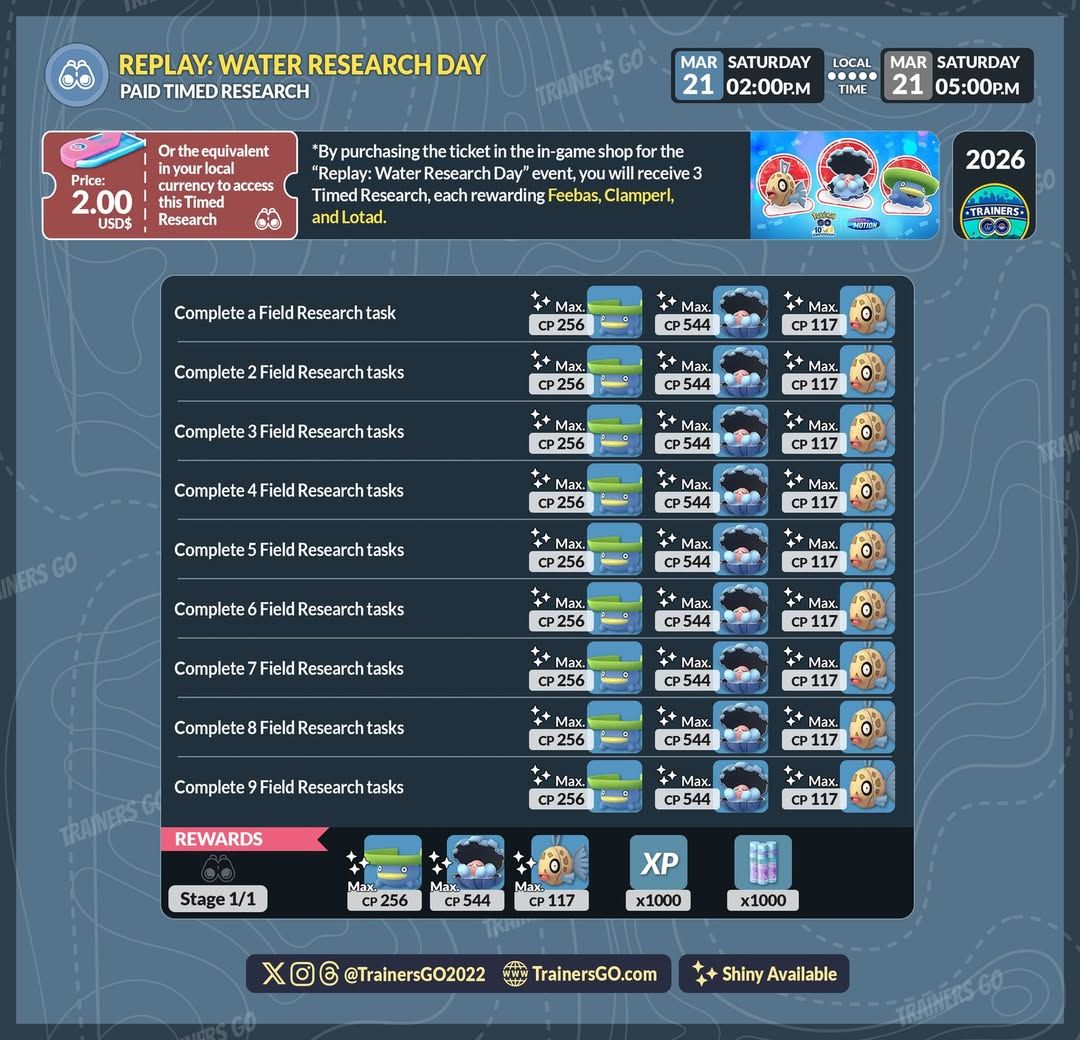 只要1.99美元(或等值當地貨幣),就能參與活動限定的限時任務。只要完成本次限時任務的田野任務課題,就能獲得經驗、星塵,以及更多遇見主角寶可夢的機會!