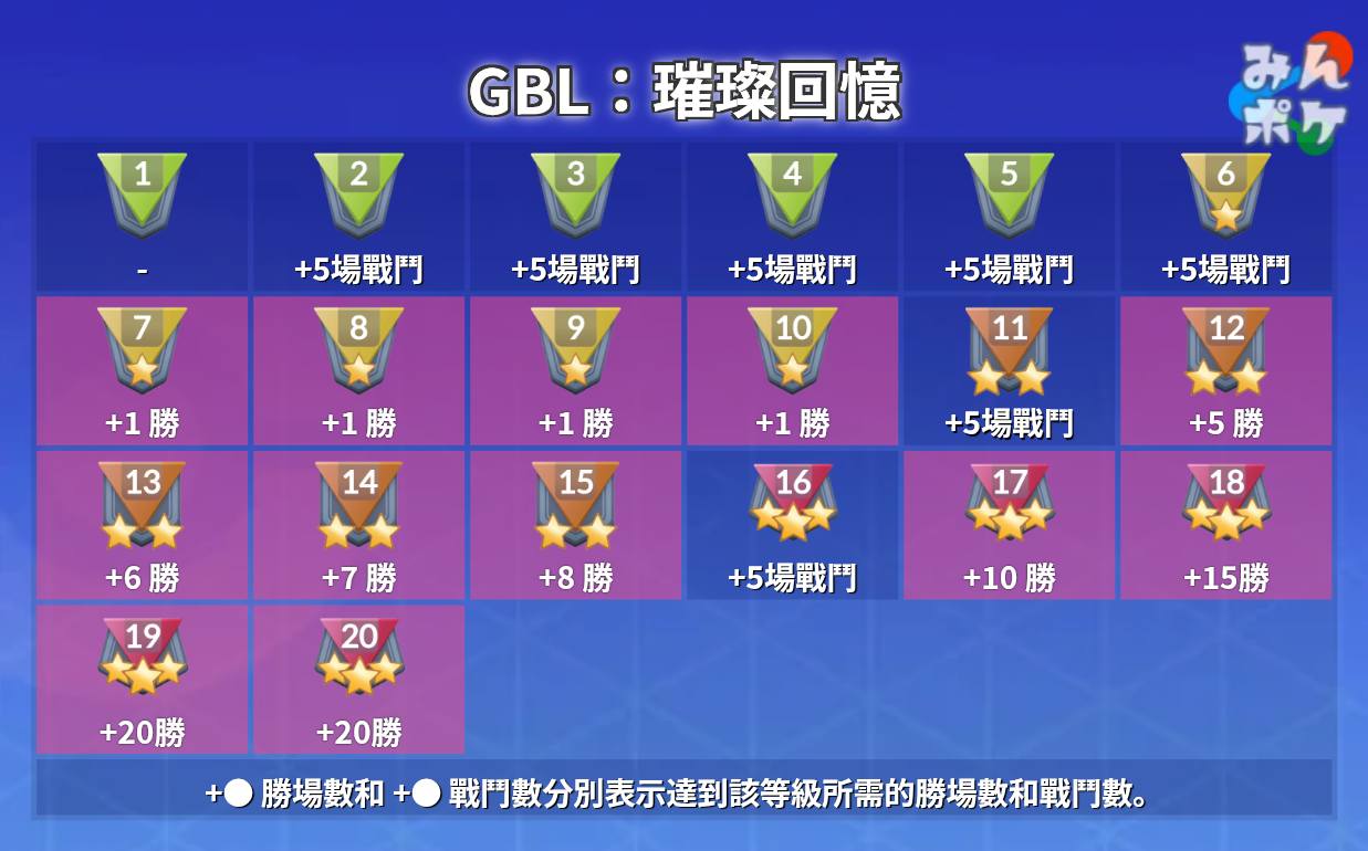 等級 16 到 20:10 勝 + 15 勝 + 20 勝 + 20 勝 = 65 勝