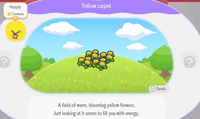 製作專屬棲息地:將4朵寧靜花朵擺放成一個區域,就能達成名為「黃色地毯」的棲息地條件。