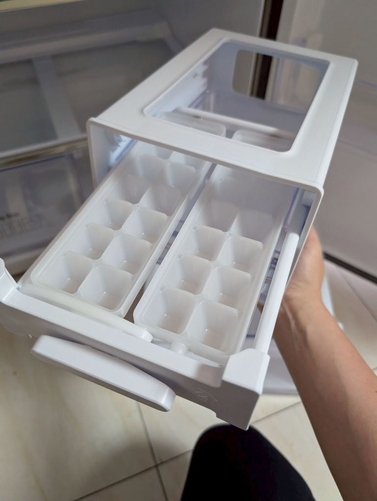 便利空間設計:配備移動式製冰盒,可自由調整擺放位置以騰出更多冷凍空間;另有可拆式收納托盤,方便直接將常備食材抽出放至桌面。
