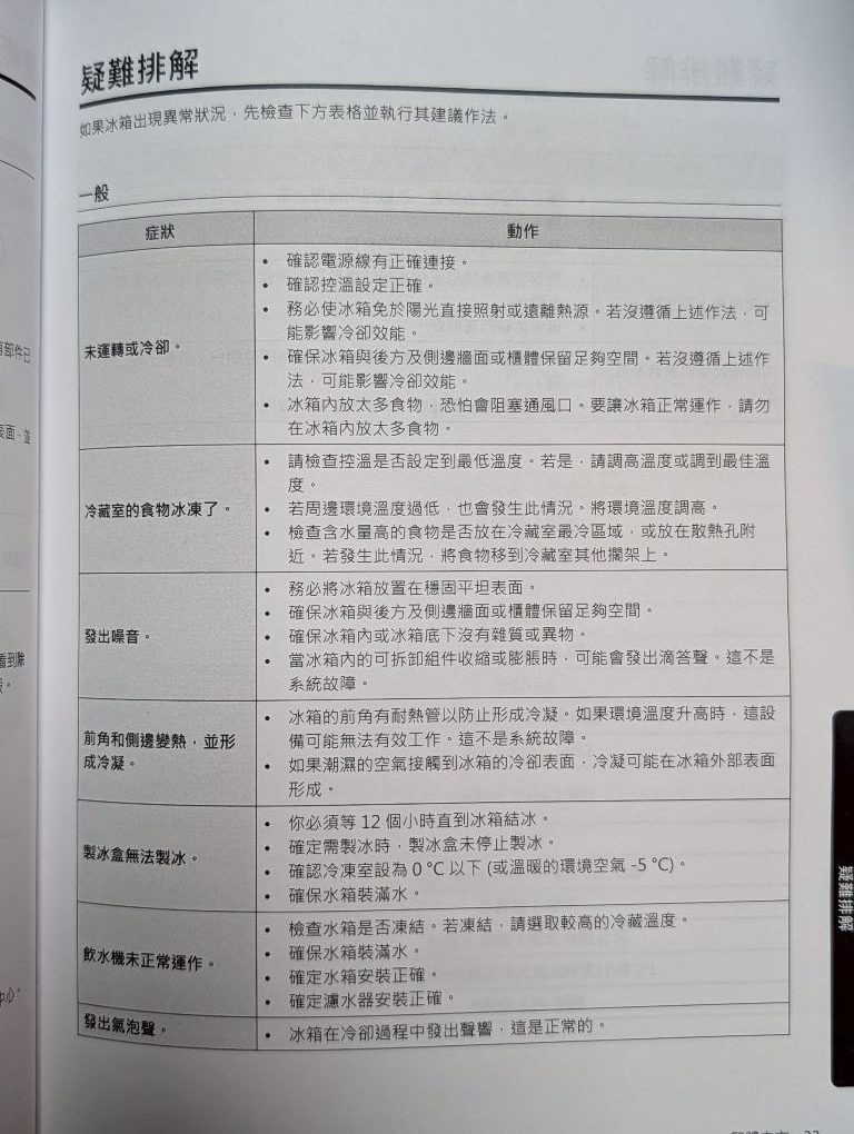 如果冰箱出現異常狀況,先檢查下方表格並執行其建議作法。