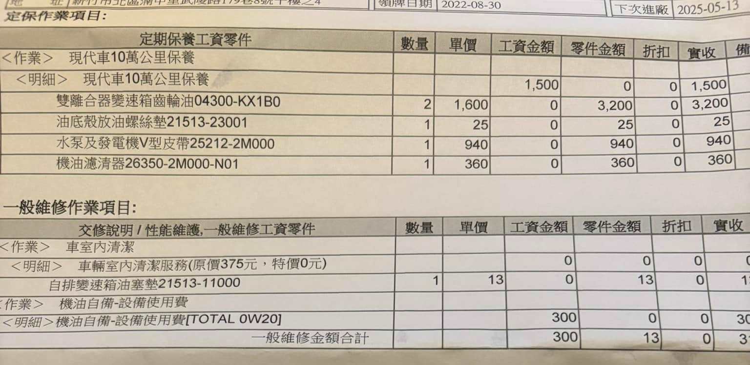 | 現代車3萬公里保養 | ||||