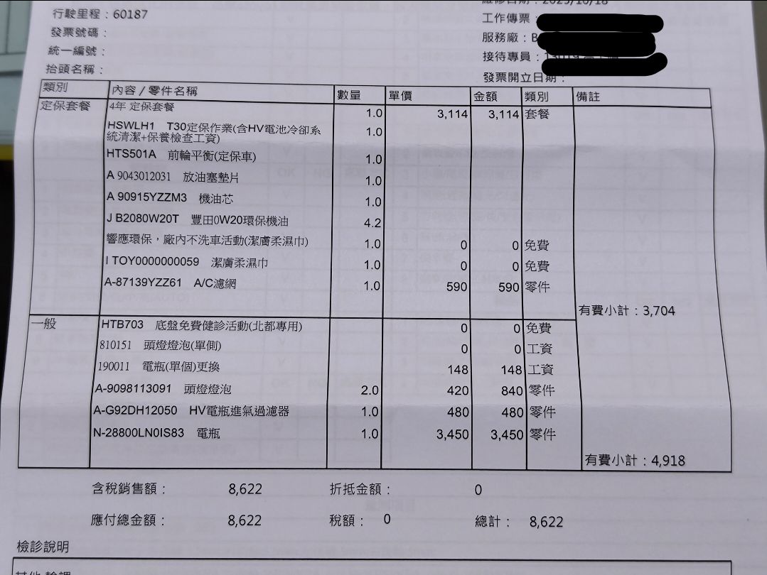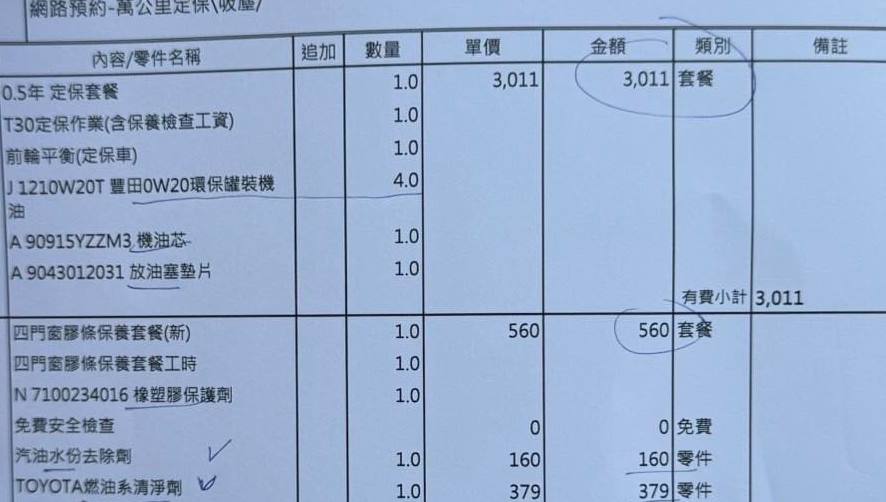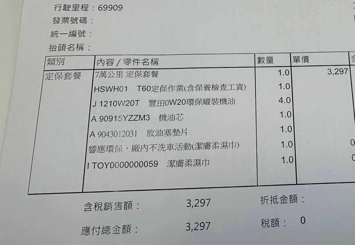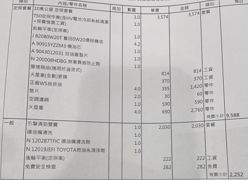 耗材差異: 2萬公里多了「煞車異音防止劑」,這在大型定保中是常見的耗材。
