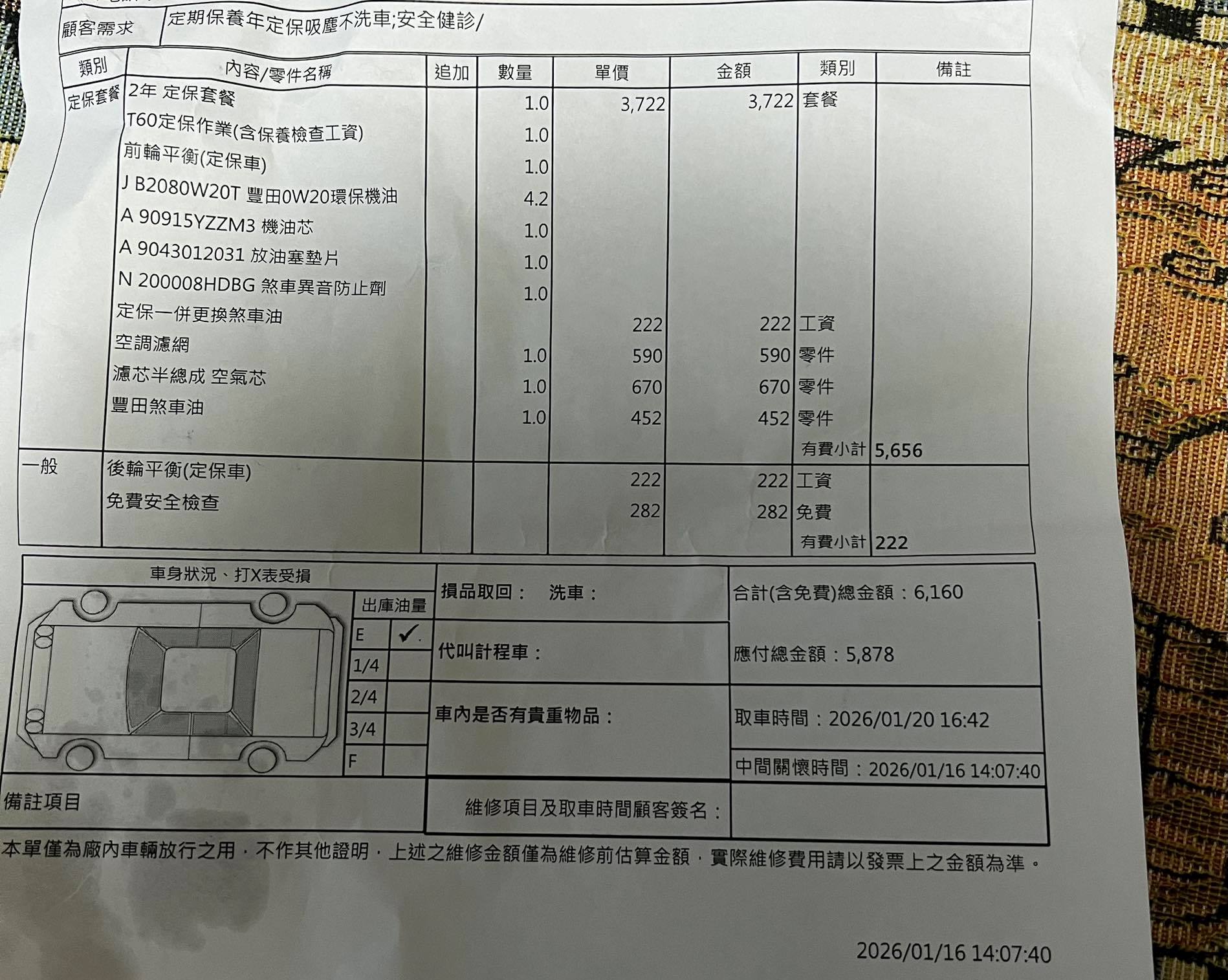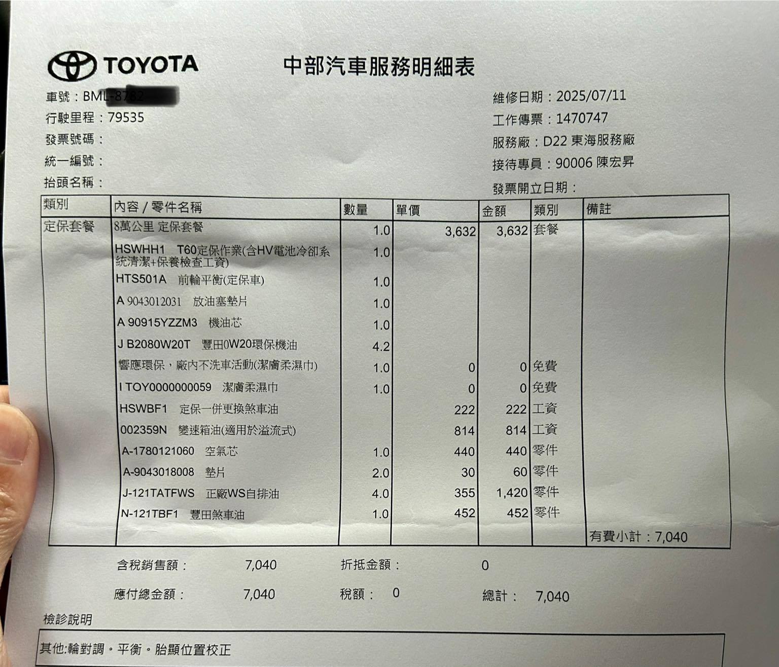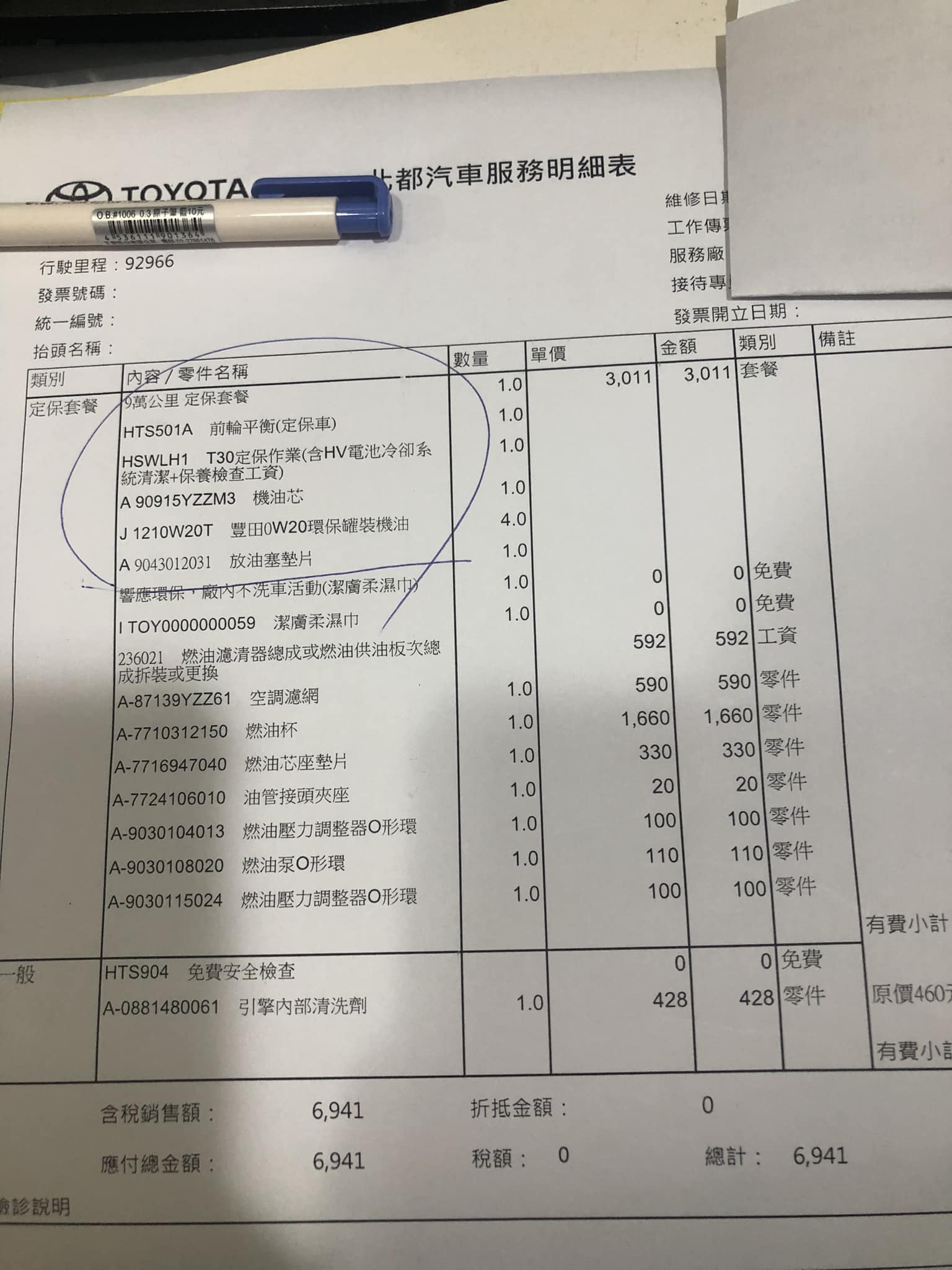 耗材差異: 2萬公里多了「煞車異音防止劑」,這在大型定保中是常見的耗材。