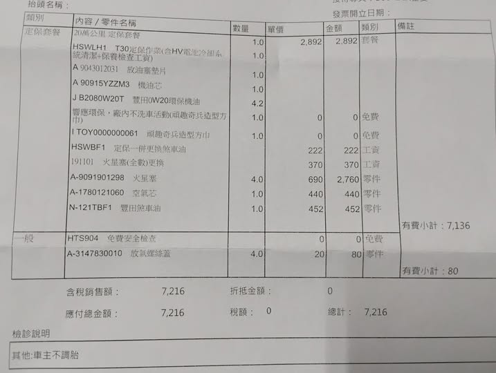 額外項目: 您在1萬公里保養時花費較高(14,800 元),主因是加裝了底盤拉桿;而這次 2萬公里的保養(5,878 元)則回歸到純粹的消耗品與基本維修。