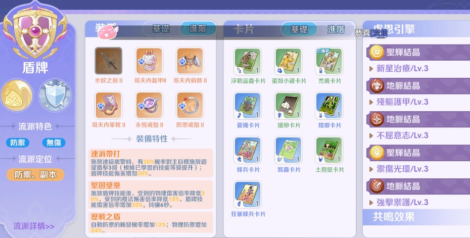 一、 盾牌流派 (定位:防禦、副本)