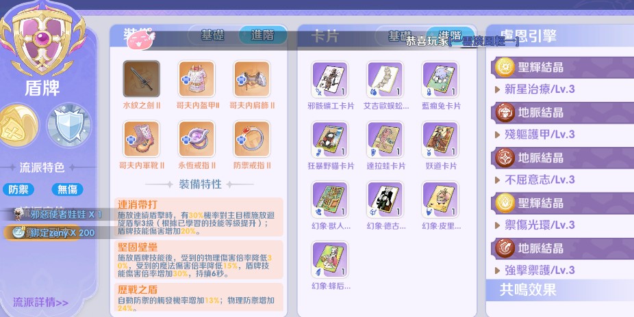 定位選擇:由於中後期的養成資源(如盧恩引擎結晶、王卡、高階精煉)獲取不易,建議玩家初期務必專精單一流派。若平時多為單人掛機或參與野團,強烈建議以「聖十字流」起手以確保發育速度;若擁有固定親友團且隊伍極度缺乏主坦,再考慮將資源投入「盾牌流」。