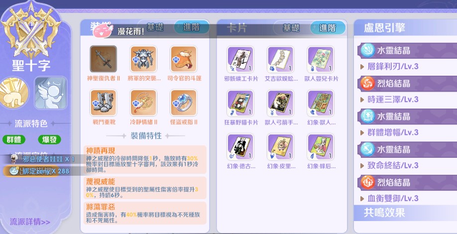 玩家評價:被多數網友公認為目前十字軍最舒服的萬金油玩法。無論是日常掛機賺取資源,還是參與一般難度副本,都能提供極佳的貢獻度,是現階段轉職的首選流派。
